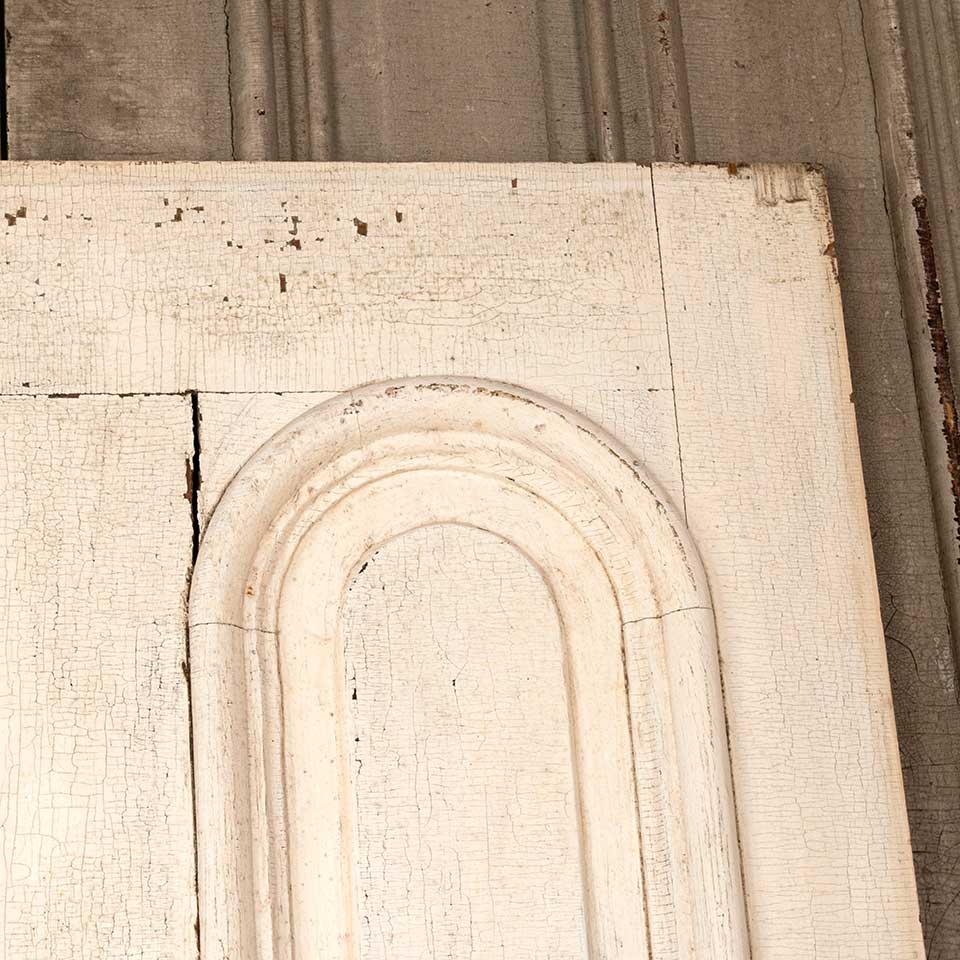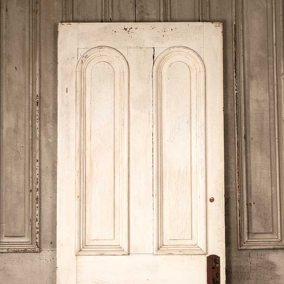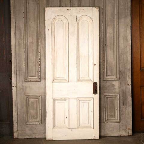 Architectural salvage antique four panel wood entry door with mortise lock measuring approx. 31 5/8" wide x 78 1/2" tall x 1 3/8" thick. There's a split in the wood at the mortise lock. This door is painted on the exterior and natural on the interior. See photos to evaluate condition.