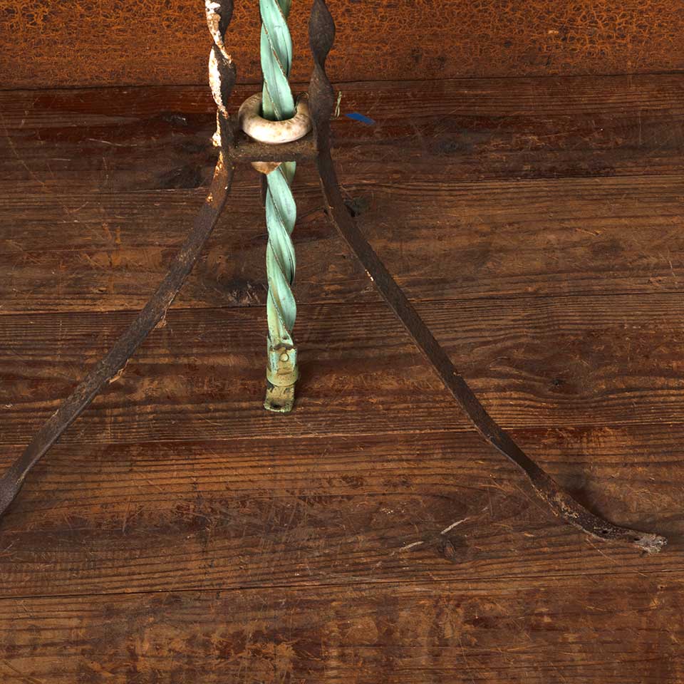 Architectural salvage antique spiraled copper lighting rod and wrought iron stand base measuring approx. 44" tall with a 10 1/2" diameter base. See photos to evaluate condition.