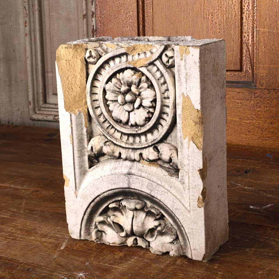 Architectural salvage terra cotta building ornament measuring approx. 10" wide x 13" tall x 4" front to back. This piece was originally part of the Peruna Drug/Medicine Company Building in Columbus, Ohio lost in 1973. See photos to evaluate condition.