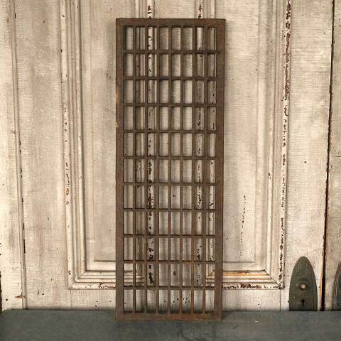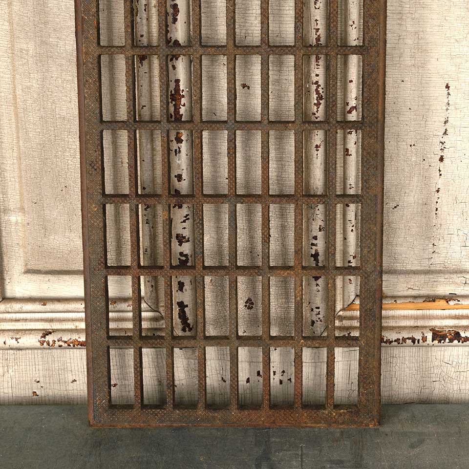 Architectural salvage antique cast iron cold air return floor grate vent cover register grille measuring approx. 10" x 30" (insert dimensions) and 11 1/8" x 31 1/16" (overall dimensions). See photos to evaluate condition.
