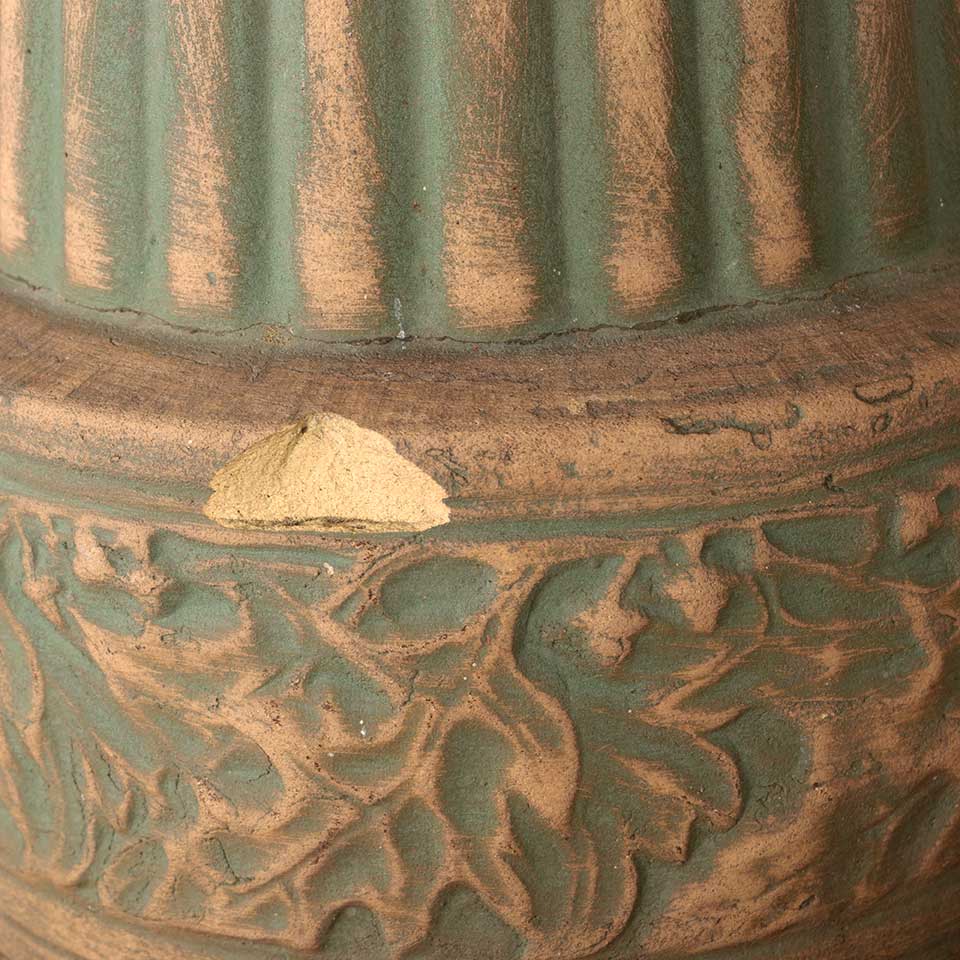 Terra cotta garden birdbath gazing ball pedestal base measuring approx. 22 1/4" tall with a 4 1/2" diameter top and a 10 1/4" diameter base. See photos to evaluate condition.