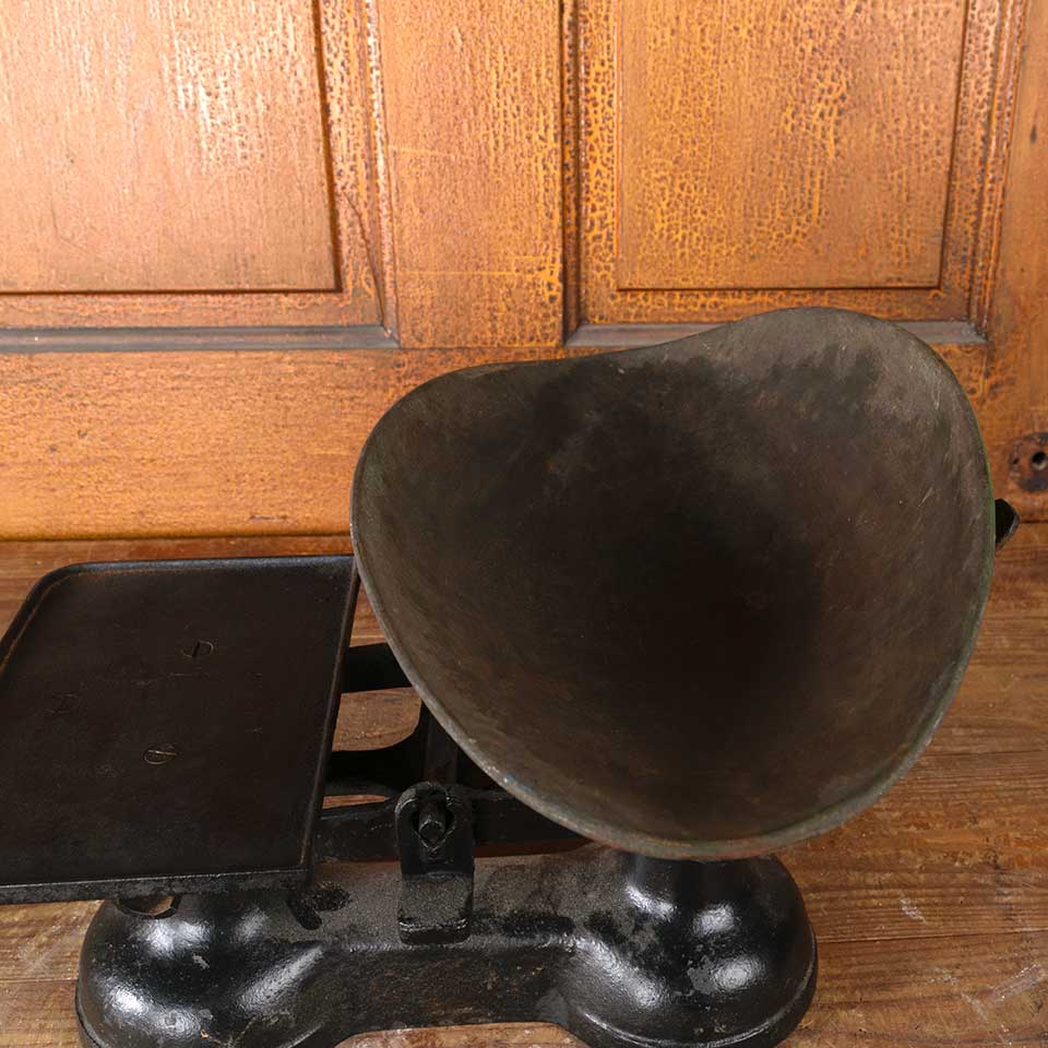 Antique store countertop balance scale marked H. FEREDAY & SONS LONDON N.1 measuring approx. 16" wide x 11 1/2" tall x 14 1/4" front to back. See photos to evaluate condition.