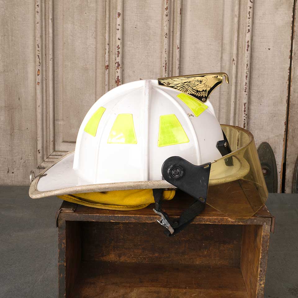 Vintage Cairns Helmets 1010 firefighter fireman fire helmet with eagle finial and visor measuring approx. 13 1/4" wide x 8" tall x 18 1/2" front to back. See photos to evaluate condition.