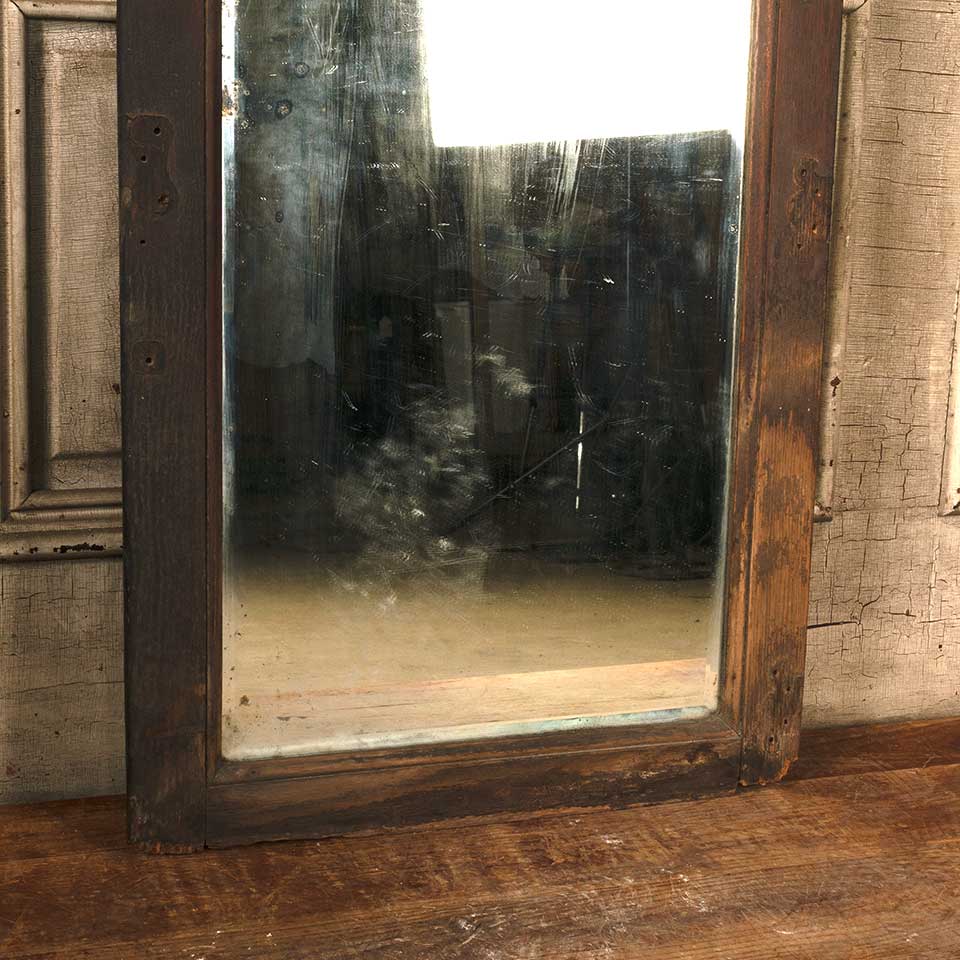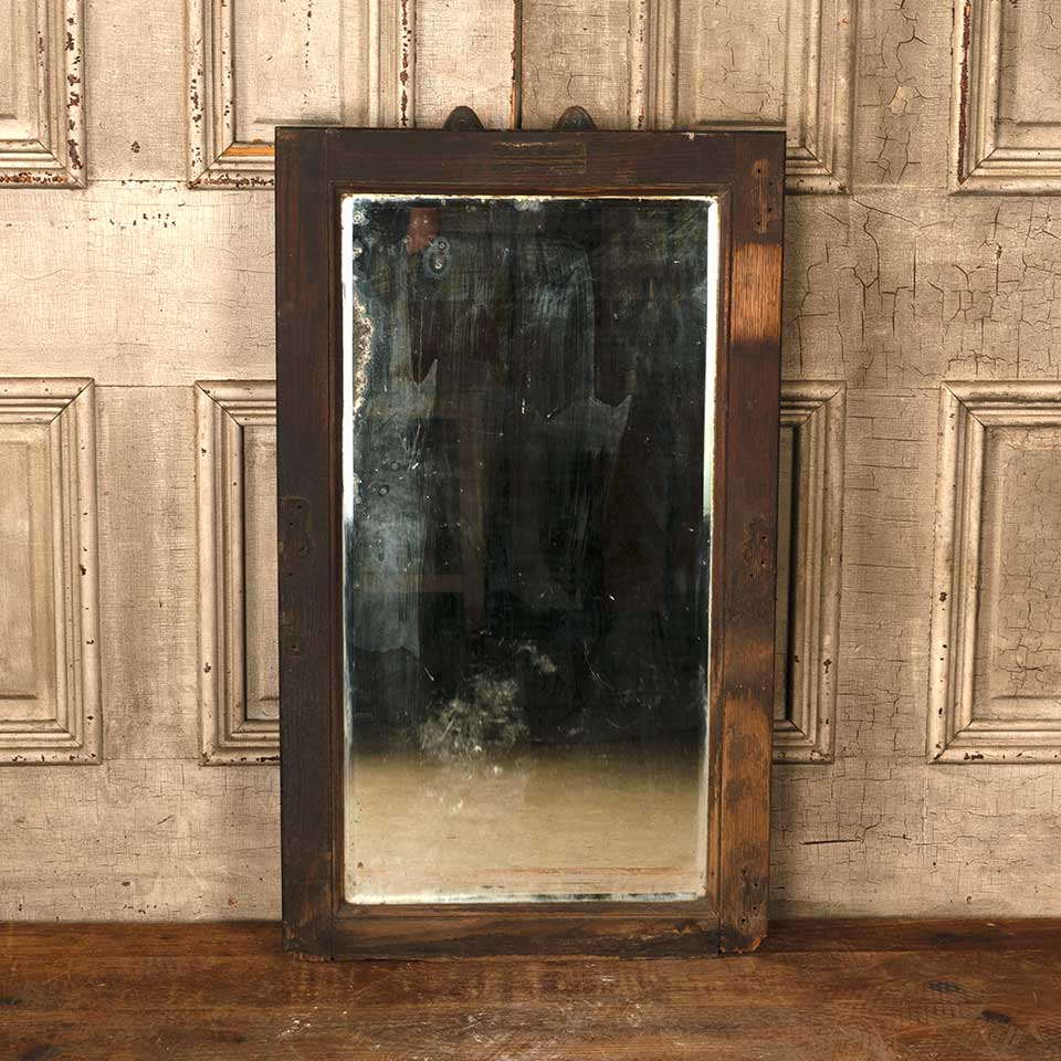 Architectural salvage antique oak wood icebox / cold cabinet door with beveled glass mirror measuring approx. 21 5/8" wide x 36 3/8" tall x 3 3/4" front to back. See photos to evaluate condition.