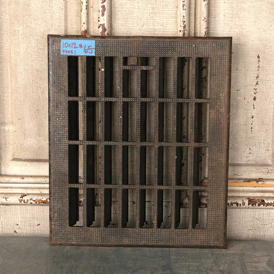 Architectural salvage antique cast iron heat grate floor vent cover with operable louvers measuring approx. 10" x "12 (insert dimensions) and 11 5/8" x 13 3/4" (overall dimensions). See photos to evaluate condition.
