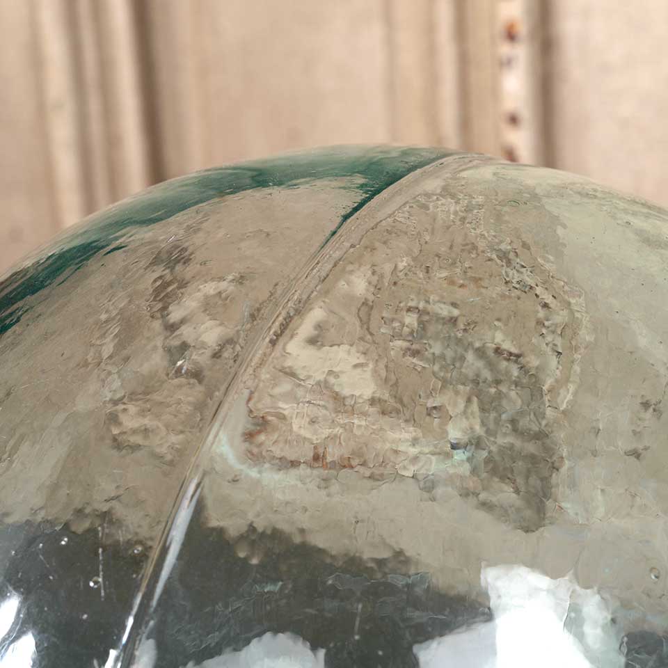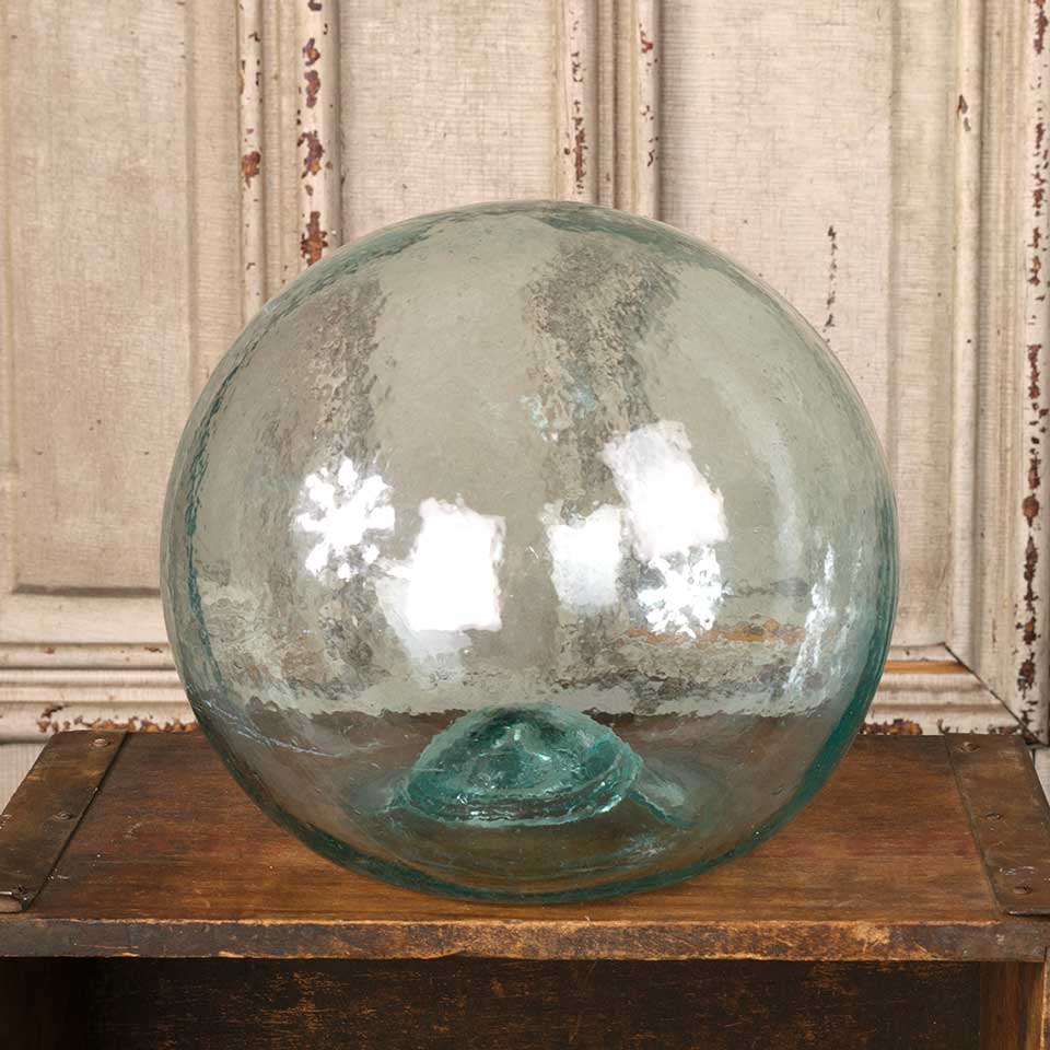 Hand blown glass sphere measuring approx. 9 1/4" in wide x 8 1/4" tall. See photos to evaluate condition.