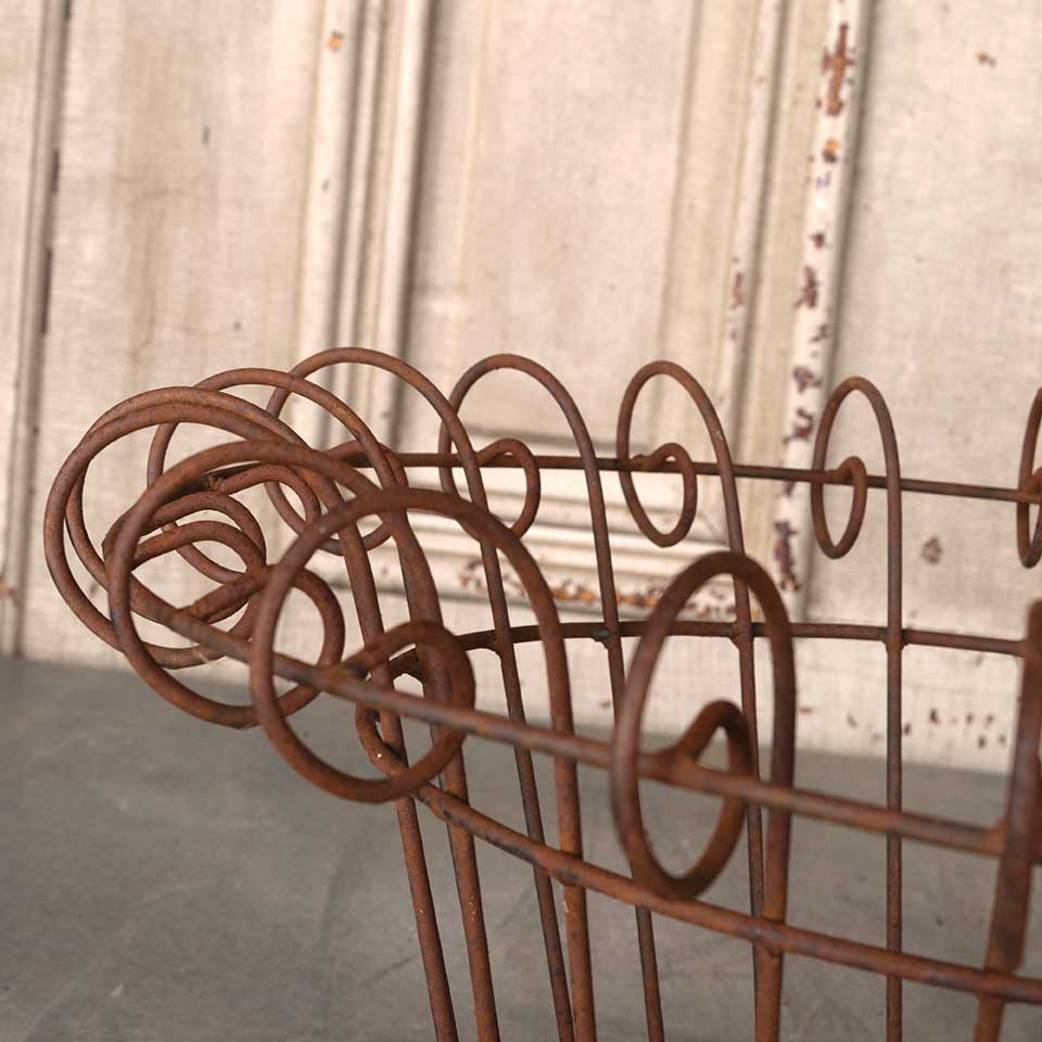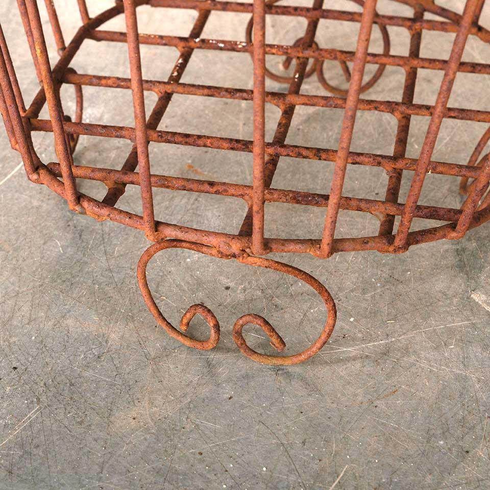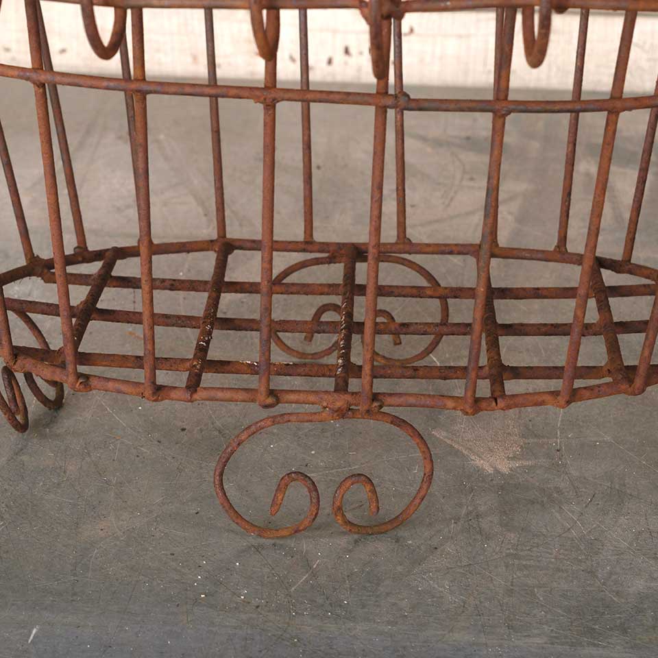 Rusty metal wire garden planter basket measuring approx. 20 1/4" wide x 9" tall x 17" front to back. See photos to evaluate condition.
