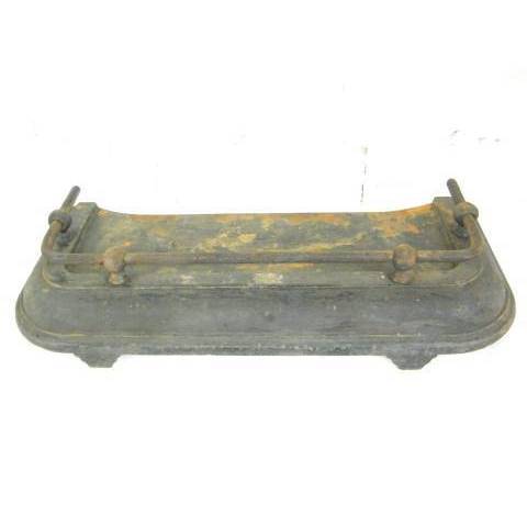 Vintage/antique architectural salvage cast iron fireplace fender measuring approximately 30 1/8" wide x 6 1/8" tall x 12 3/4" front to back.